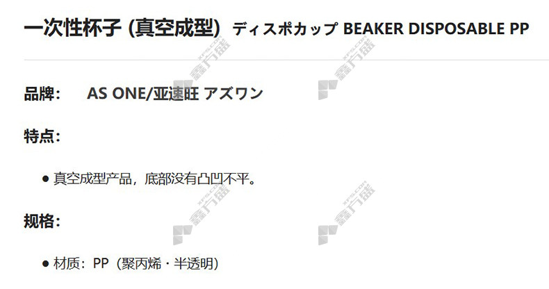 商品名称: 亚速旺 一次性塑料量杯 真空成型 V-300