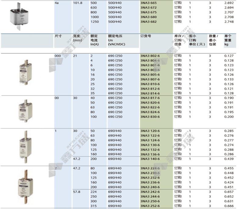 商品规格:3NA3 NH3 400A 690VAC/250V DC gL/gG