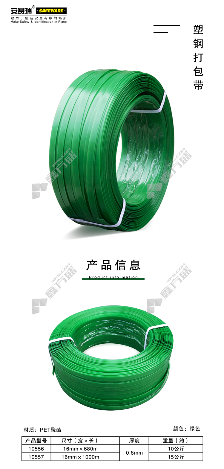 商品名称: 安赛瑞 塑钢打包带 10556 16mm*680m 10kg 绿色