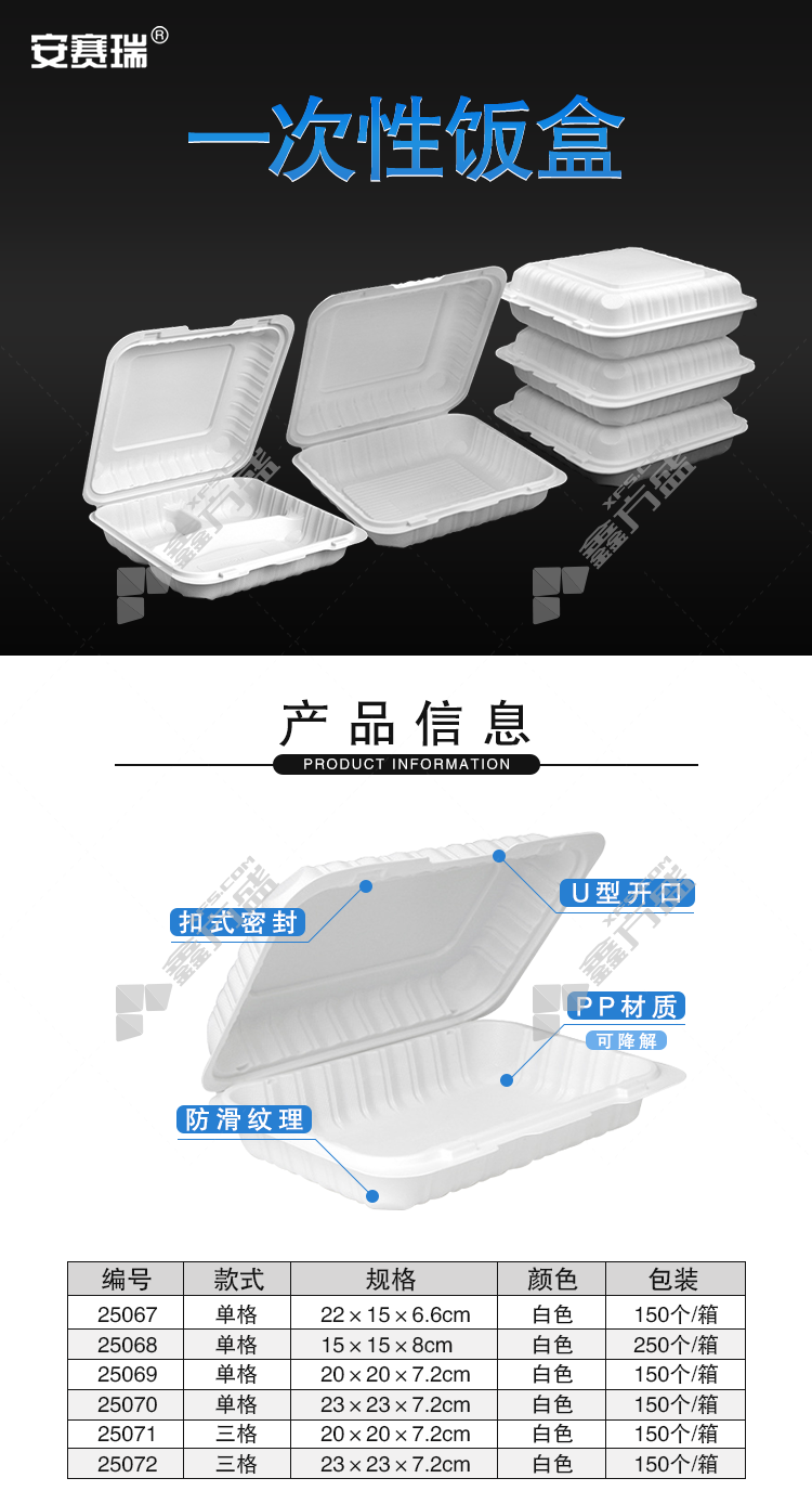 包装清单:安赛瑞 白色可降解打包快餐盒*1