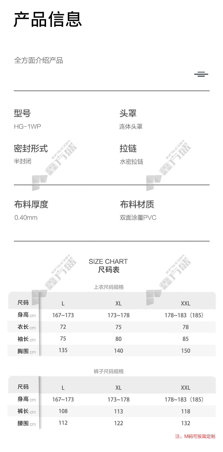 商品名称: 海固 HG-1WP分体式黄色防化服上衣 L码 黄色 1WP