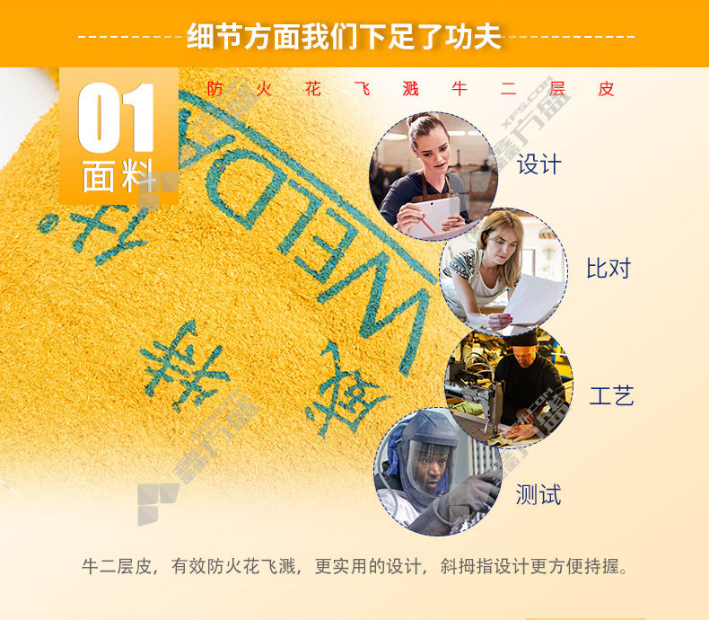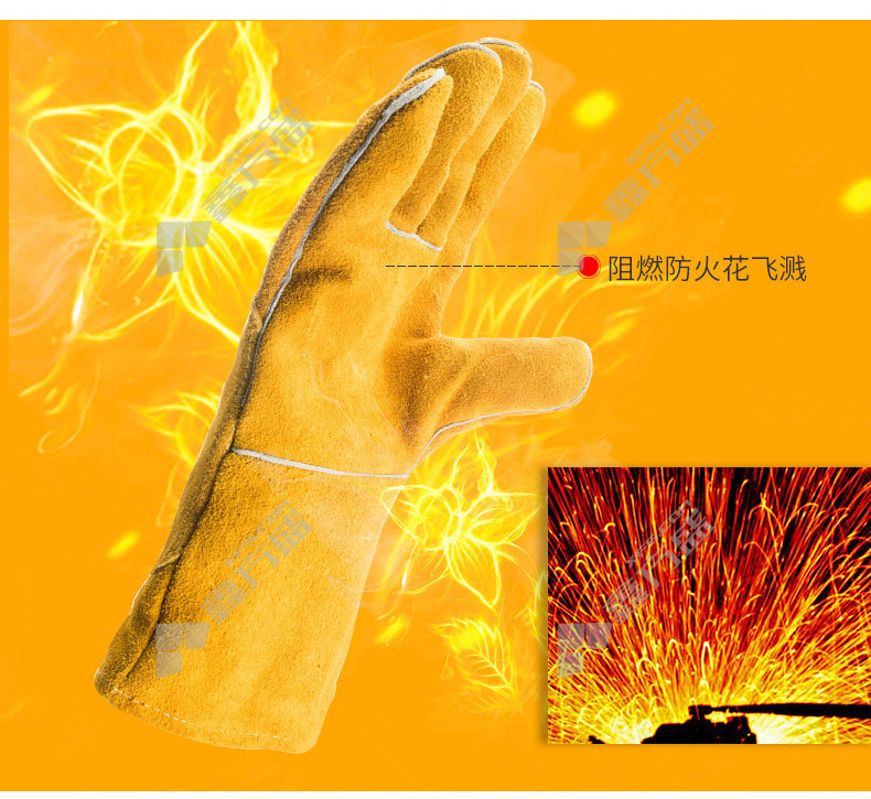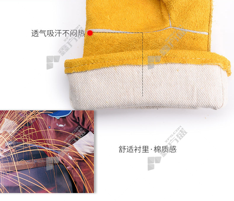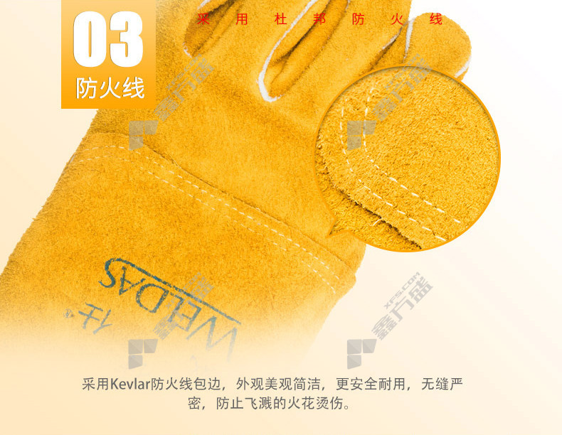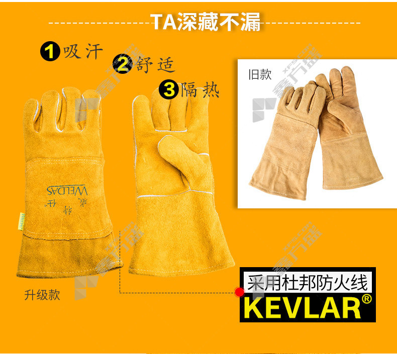 商品名称: 威特仕 10-2118 防火耐磨常规电焊手套 10-2118 XL 34cm 尊黄色