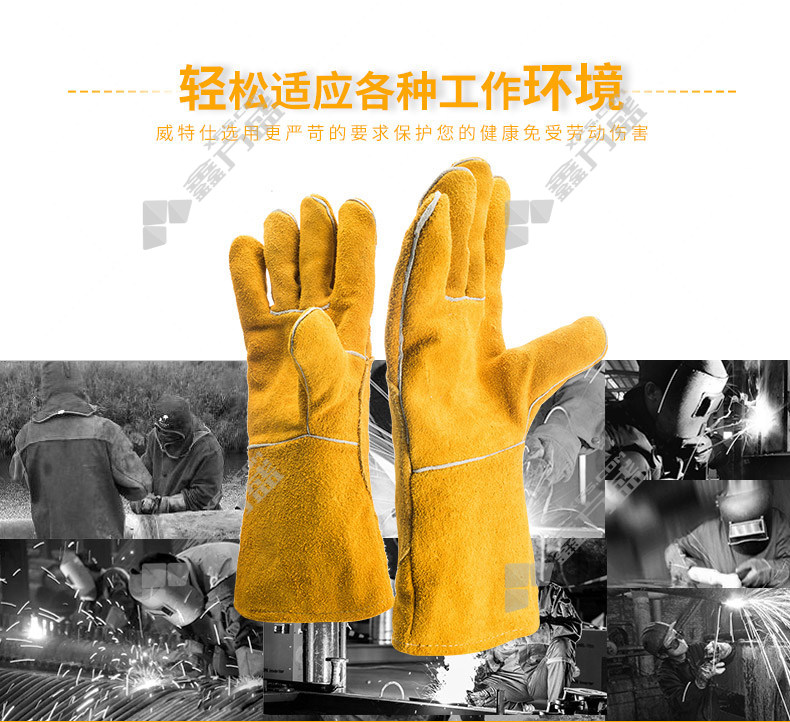 • 威特仕 10-2118 防火耐磨常规电焊手套 10-2118 XL 34cm 尊黄色