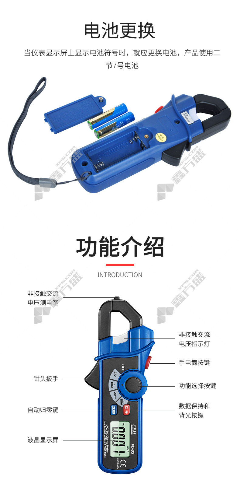 商品名称: 华盛昌 FC-33数字钳形表 18mm FC-33