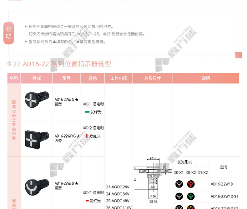 商品规格:AD16-22D/y32S/黄色/380VAC/22.3mm
