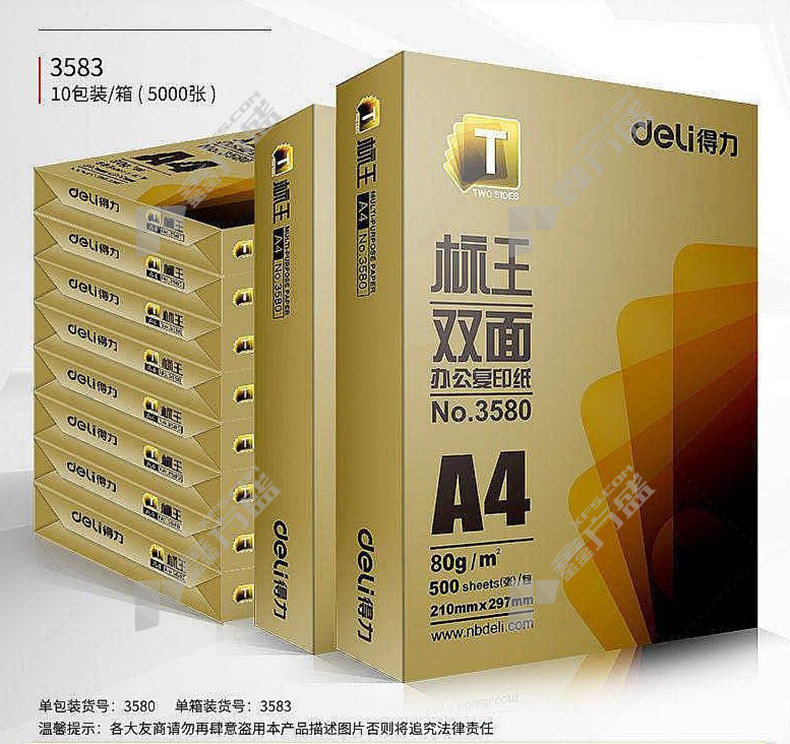 商品名称: 得力 3582 A4 标王双面复印纸 白色 80g 500张/包