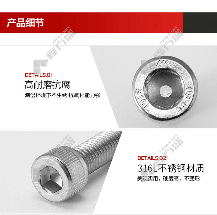 不锈钢内六角螺拴材质:316L不锈钢