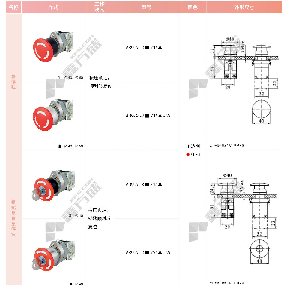 商品名称: APT 选择开关LA39-A1-22CX系列 LA39-A1-22CX/kfu