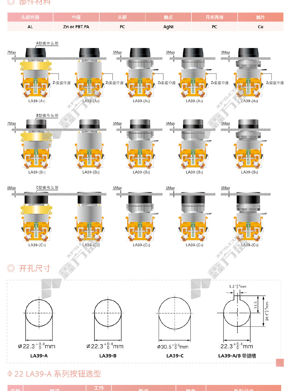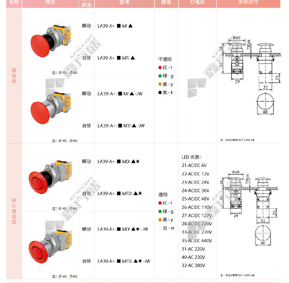商品规格:LA39-A1-11XD/b22