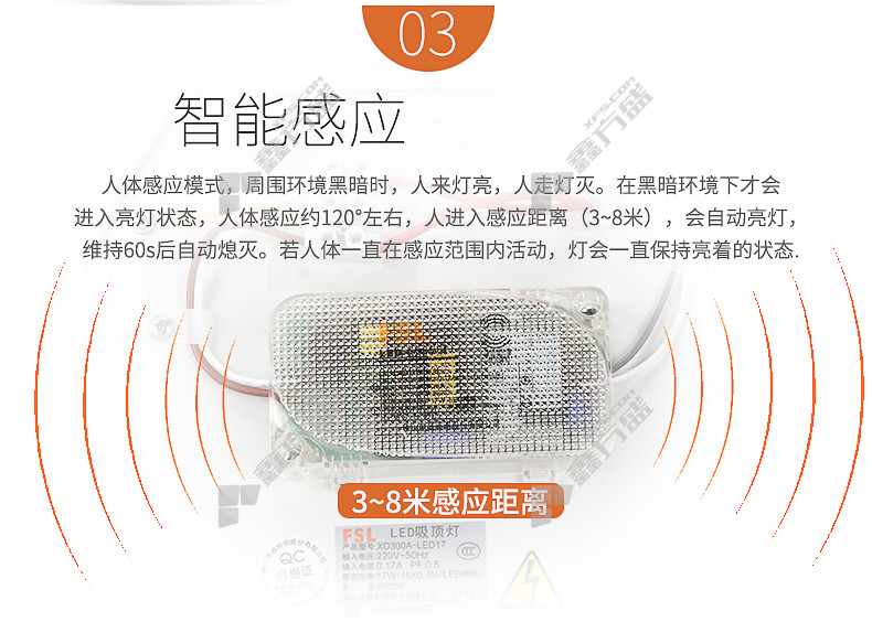 • 佛山照明 芯爱微波感应LED吸顶灯 节能亮 14W 6500K 220V  微波感应 节能亮