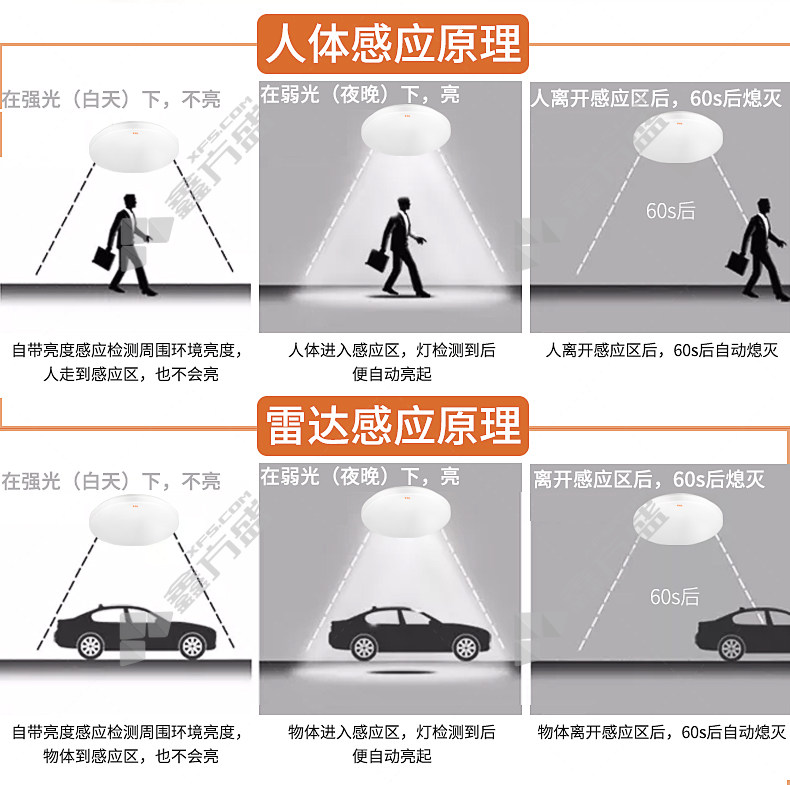 商品规格:14W/6500K 220V 微波感应 节能亮