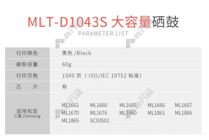 • 绘威 MLT-D1043S 硒鼓+2支碳粉 黑色 MLT-D1043S硒鼓+2支碳粉 常规