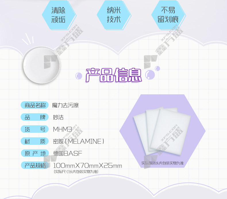 商品名称: 妙潔 魔力去污擦 100mm*70mm*25mm 白色
