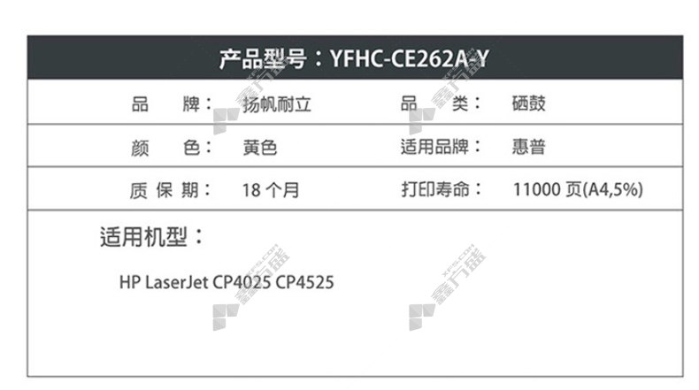 商品名称: 扬帆耐立 CE262A 硒鼓 黄色 黄色648A CE262A-Y 常规