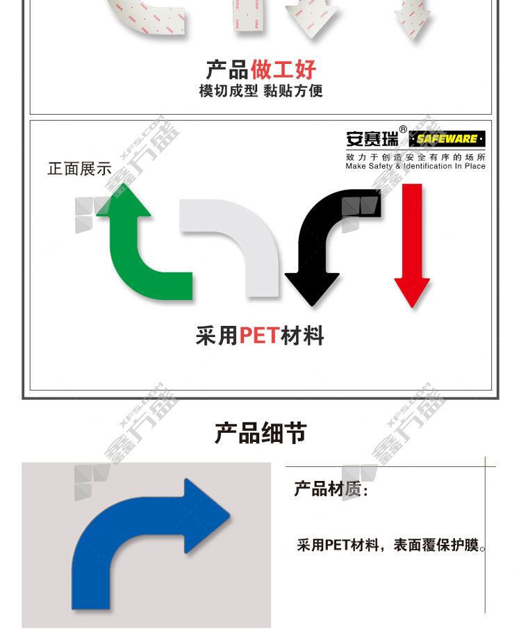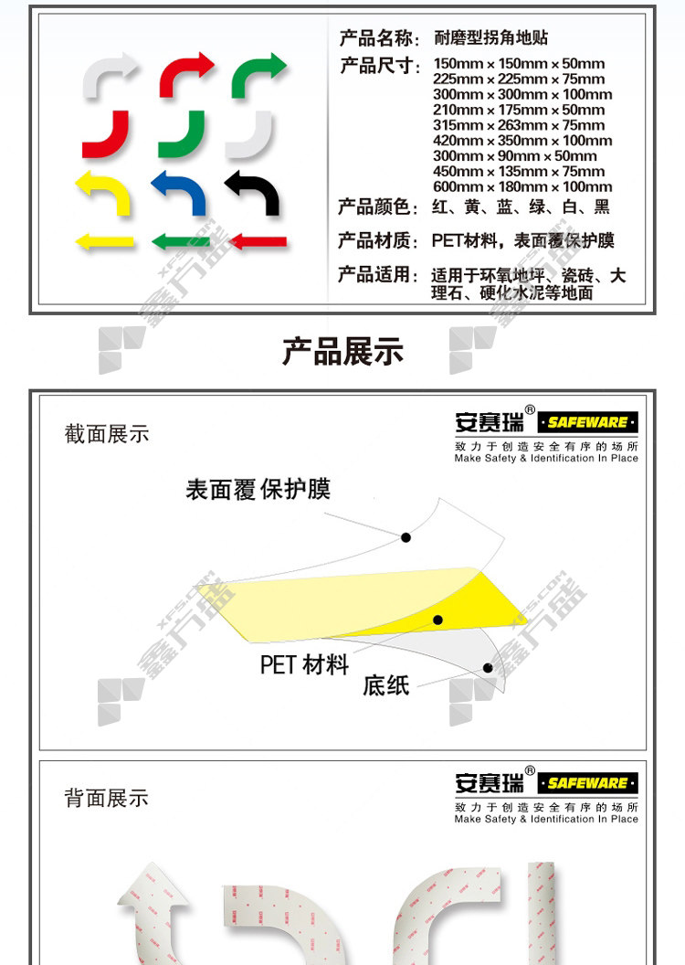 商品名称: 安赛瑞 11910 10片装拐角地贴(拐弯箭头地贴) 225*225*75mm 11910 红 10片装