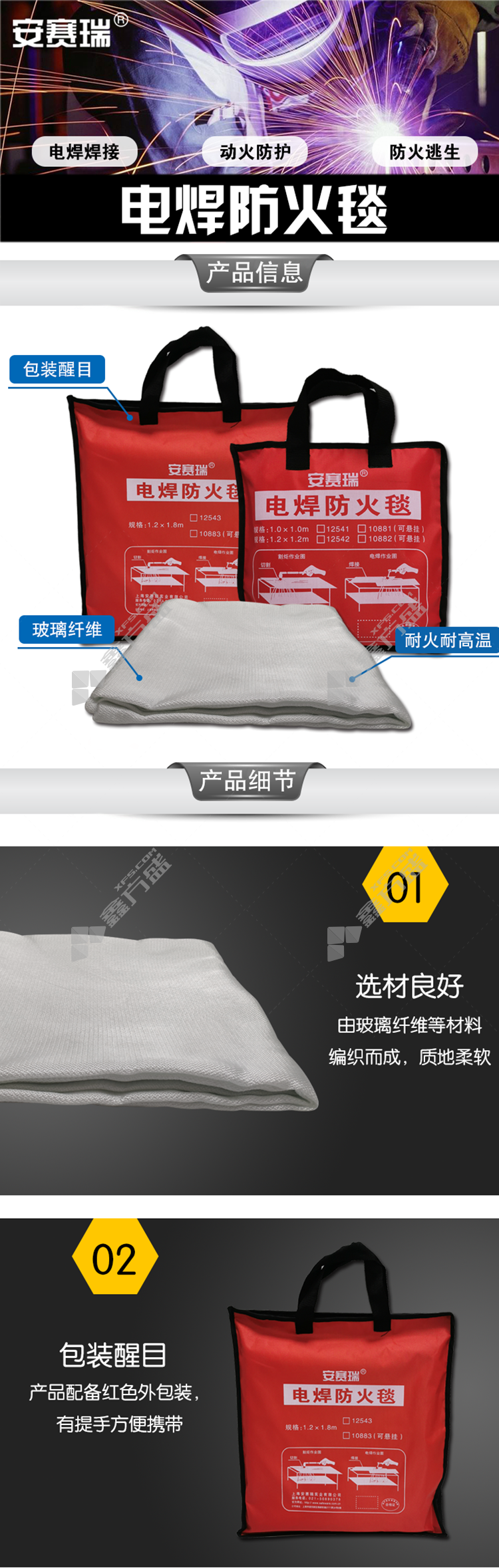 商品名称: 安赛瑞 12543 电焊防火毯 1.2*1.8m 12543