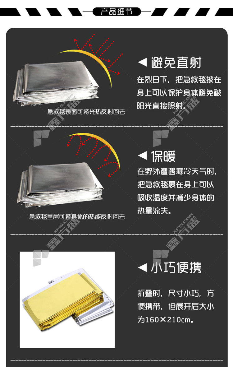 商品名称: 安赛瑞 25581 急救毯 160*210cm 金银双面 25581