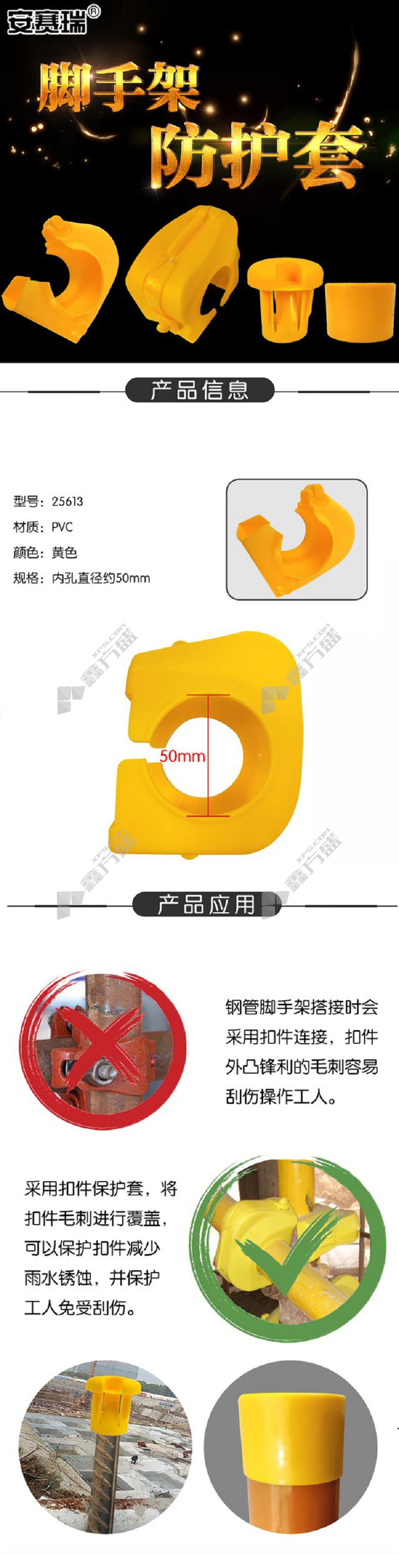 商品名称: 安赛瑞 25613 半封闭脚手架防护套 内孔直径约50mm 25613