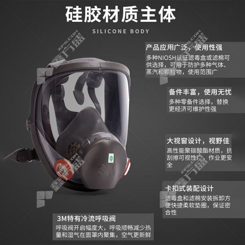 商品名称: 3M 6800 全面型双缸防护面罩 中号