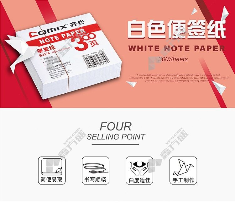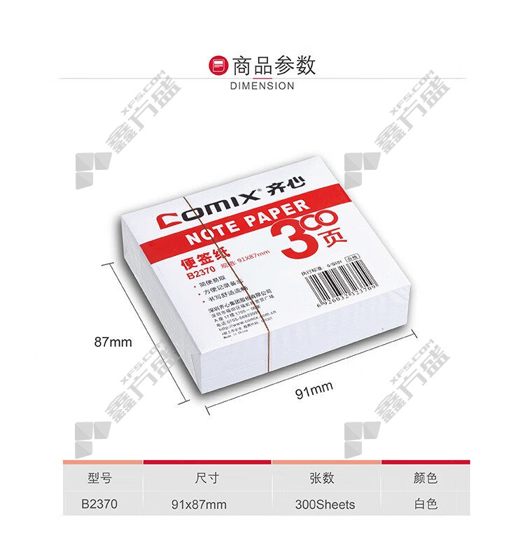 商品名称: 齐心 B2370 便签纸 91*87mm 300页 白色