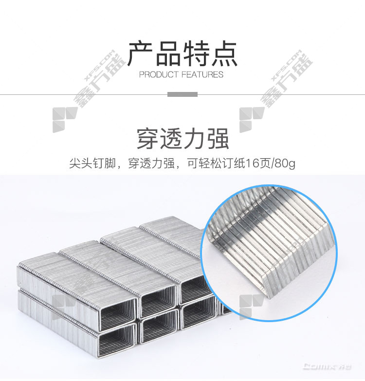 首页 首页 > 齐心 B3057 订书钉 10# 16页 1000枚/盒