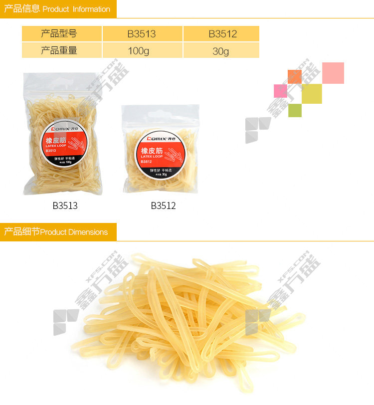 包装清单:齐心Comix 橡皮筋B3513*1袋