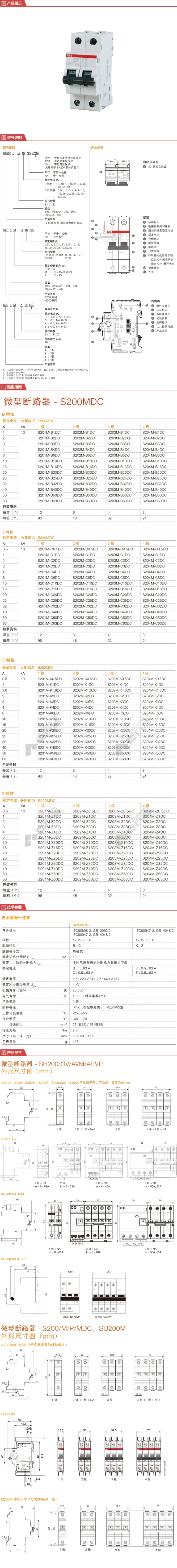• ABB 微型断路器S202M系列2P S202M-K1.6