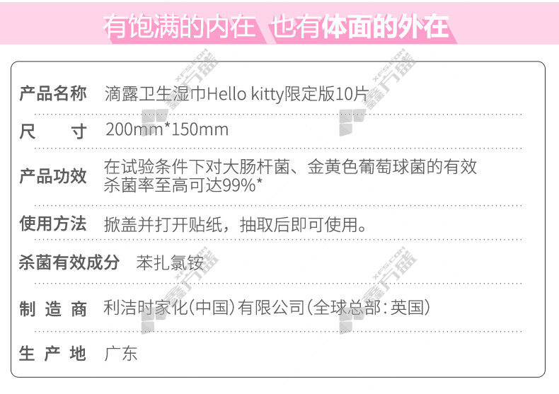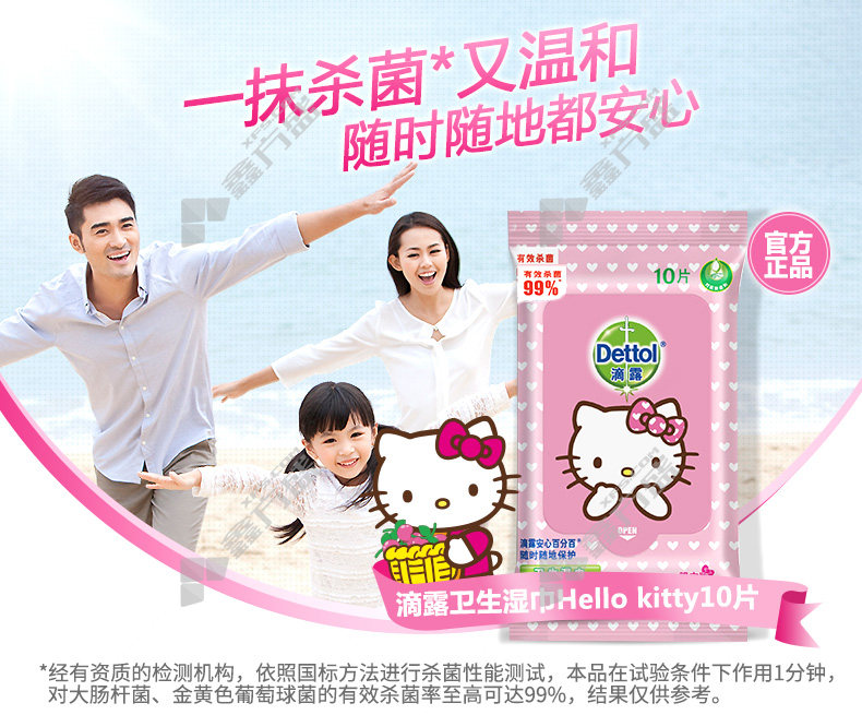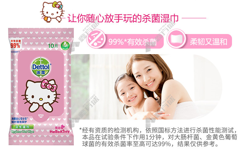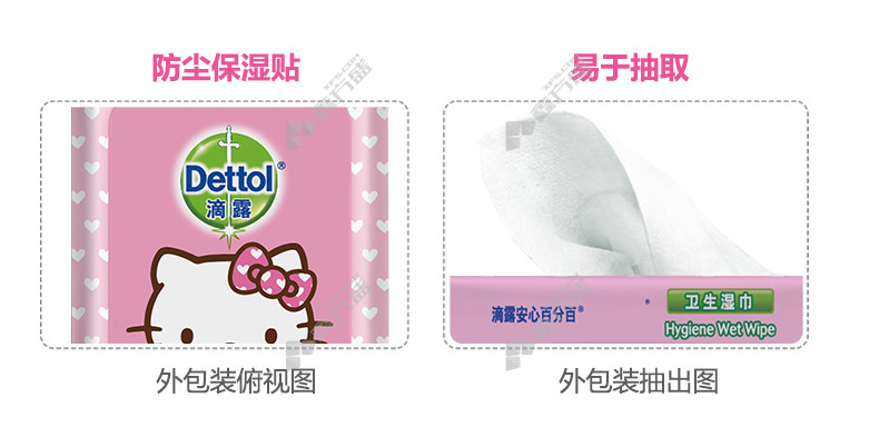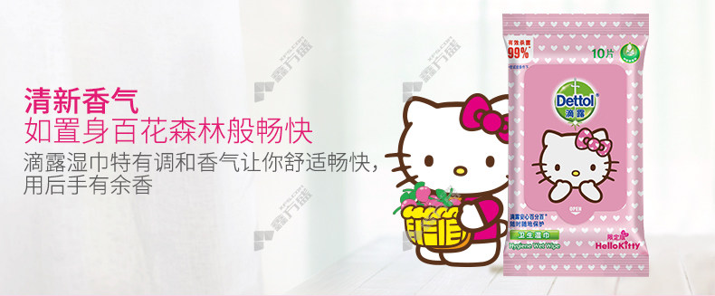 商品名称: 滴露 DETTOL hello kitty卫生湿巾 10抽 200*150mm