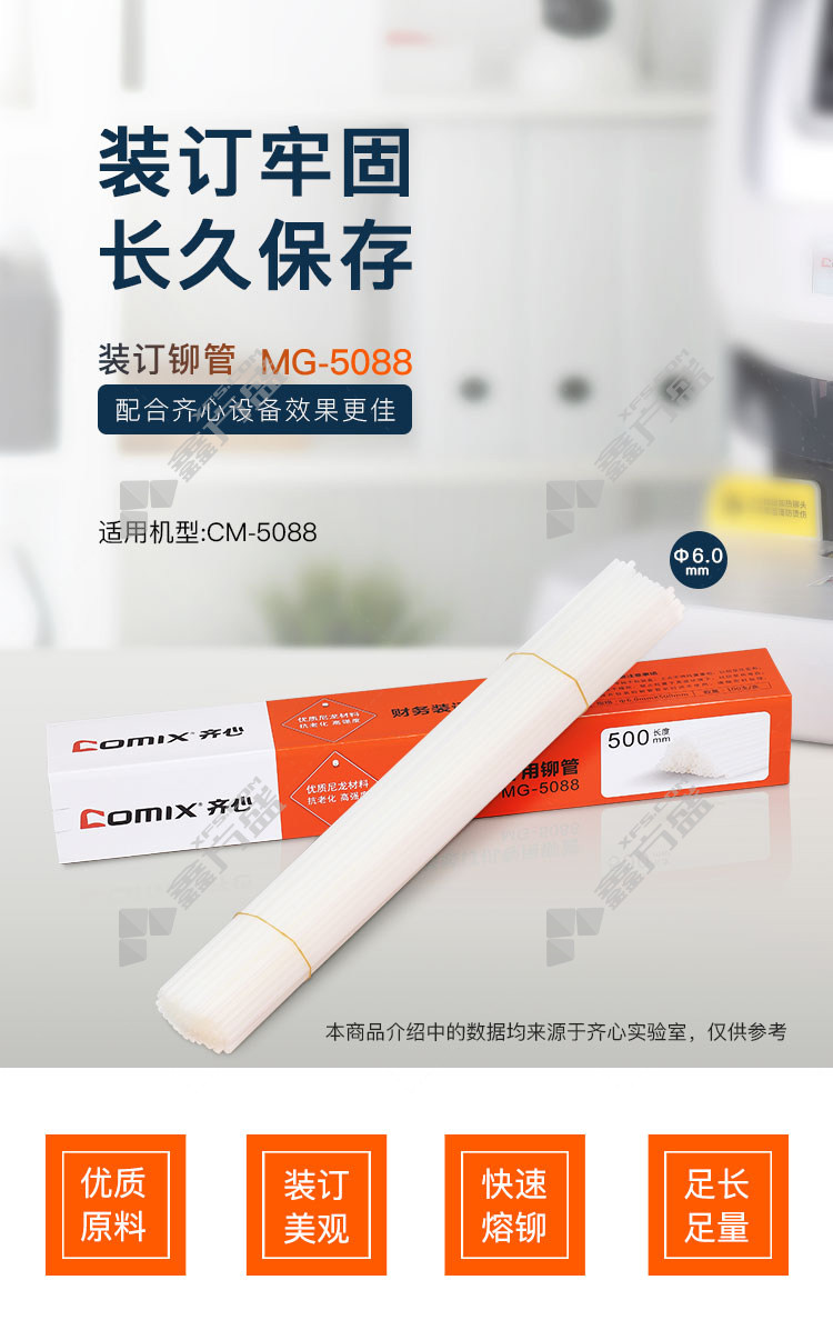 商品名称: 齐心 全自动财务装订机铆管100支/盒 MG-5088 白色