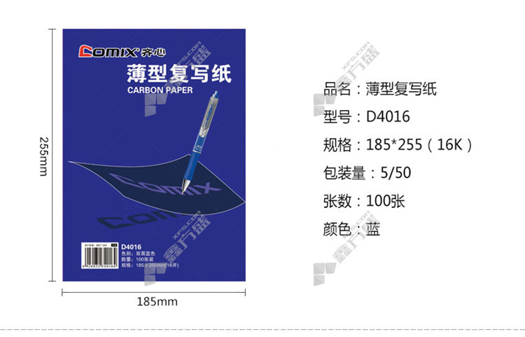 商品名称: 齐心 复写纸蓝色100页 48K 85*185mm 100页 D4048