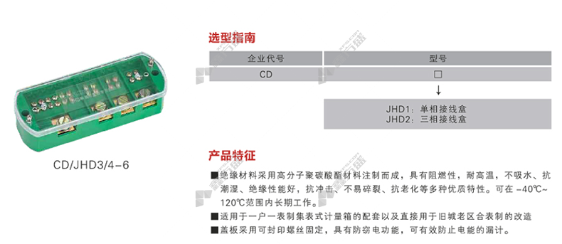德力西DELIXI 接线盒CD/JHD-1 CD/JHD-1/a(单极三表户接线端子)