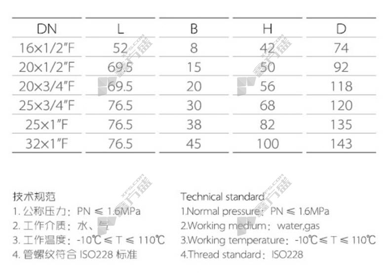 铜球阀适用温度:-10°C≤T≤110°C