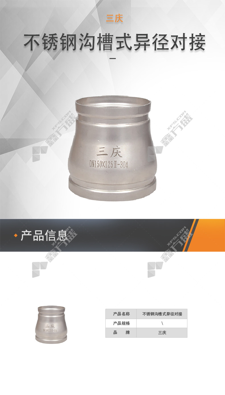 商品名称: 三庆 304不锈钢沟槽式异径对接I系列 φ219*133mm
