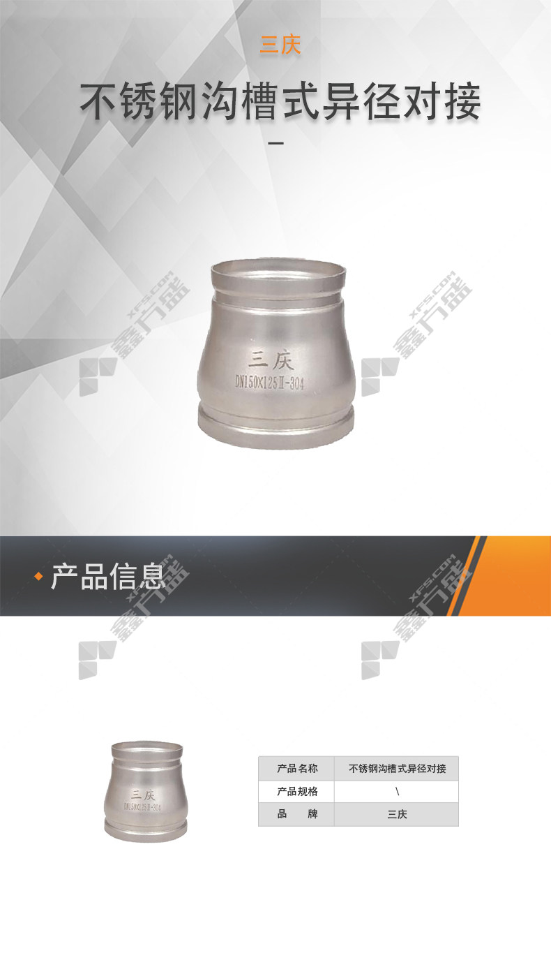 • 三庆 304不锈钢沟槽式异径对接II系列 φ159*133mm