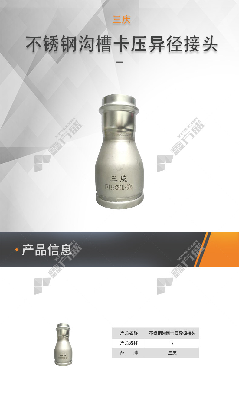 商品名称: 三庆 304不锈钢沟槽卡压异径接头I系列抛光 φ219*63.5mm