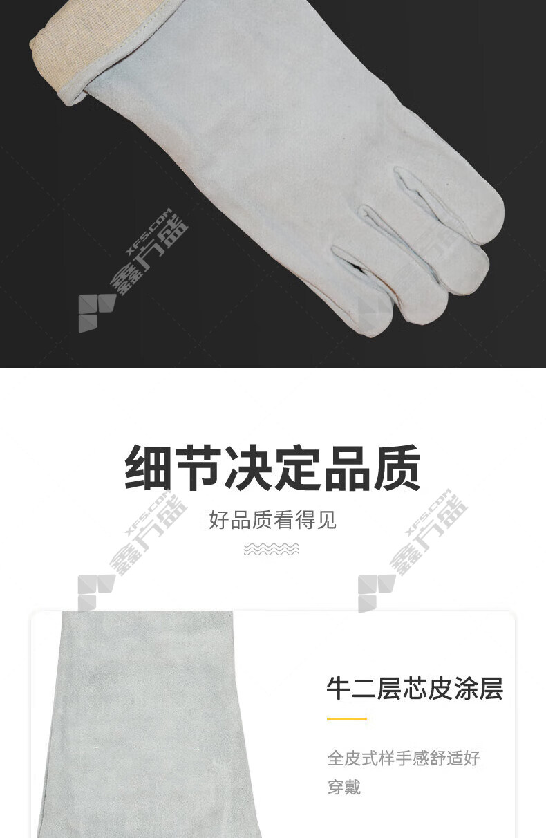 商品名称: 君御 2112 二层加厚电焊手套防火线 2112 均码 35cm 灰色