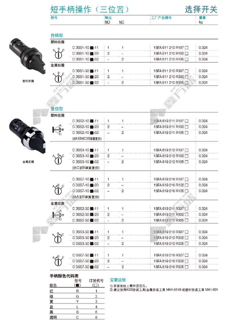 商品名称: ABB 选择开关 C2SS3-10B-10