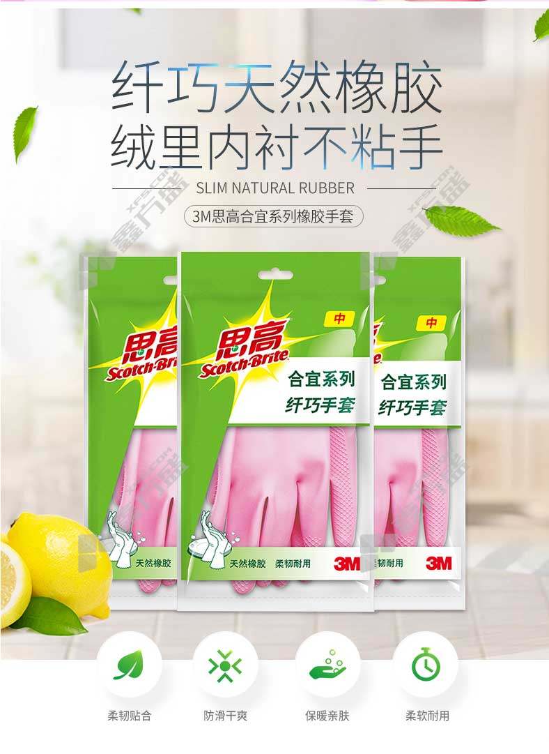 商品名称: 3M 思高合宜纤巧手套 M 粉色 天然橡胶 XY003826720