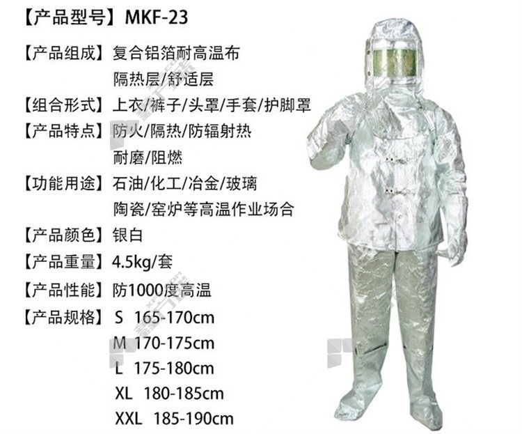 商品名称: 美康 MKF-23 不带背囊 1000℃ 耐高温防辐射劳保隔热服 M 银