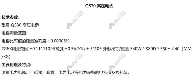 商品名称: 梅格 高压电桥-块 QS30 cs=100pF时-c=0。1PF.tg0.111110