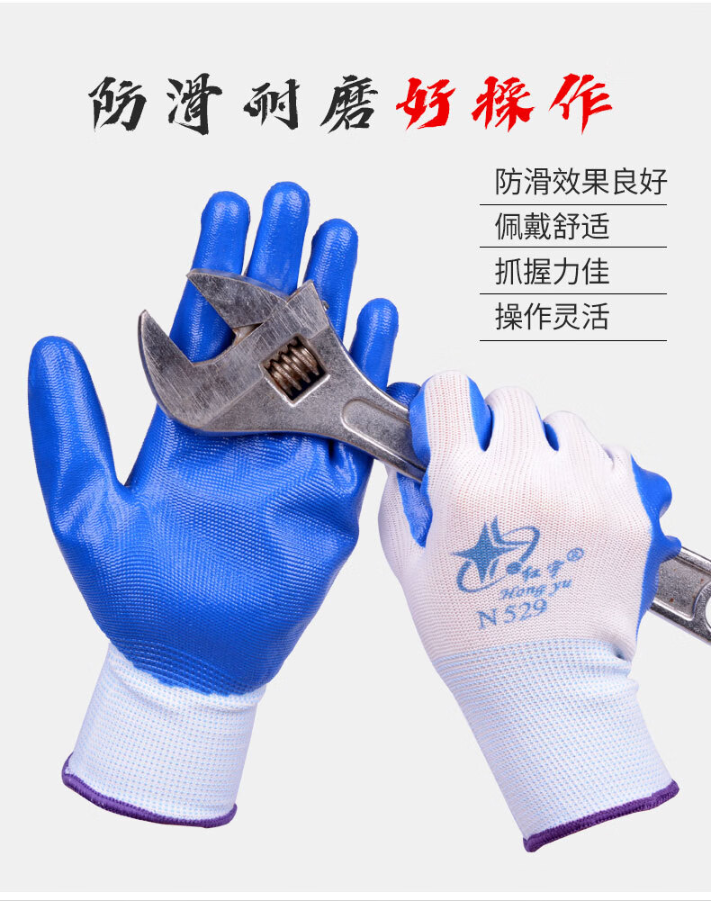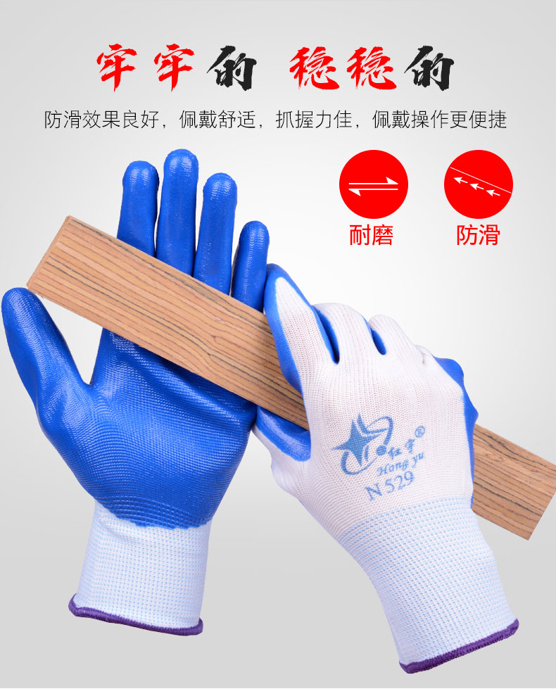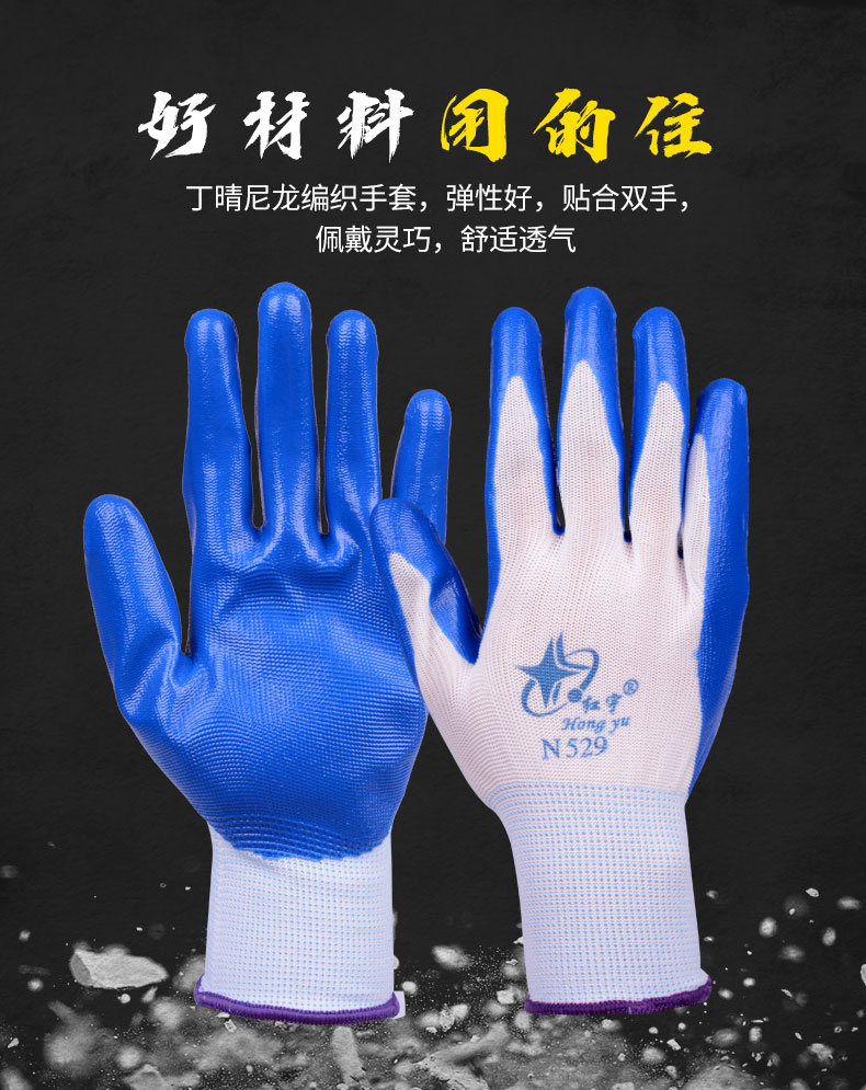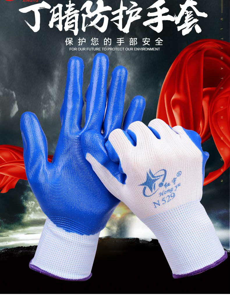 商品名称: 星宇 N529 红宇耐磨丁腈手套 均码 蓝白色