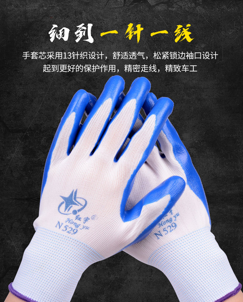 • 星宇 N529 红宇耐磨丁腈手套 均码 蓝白色