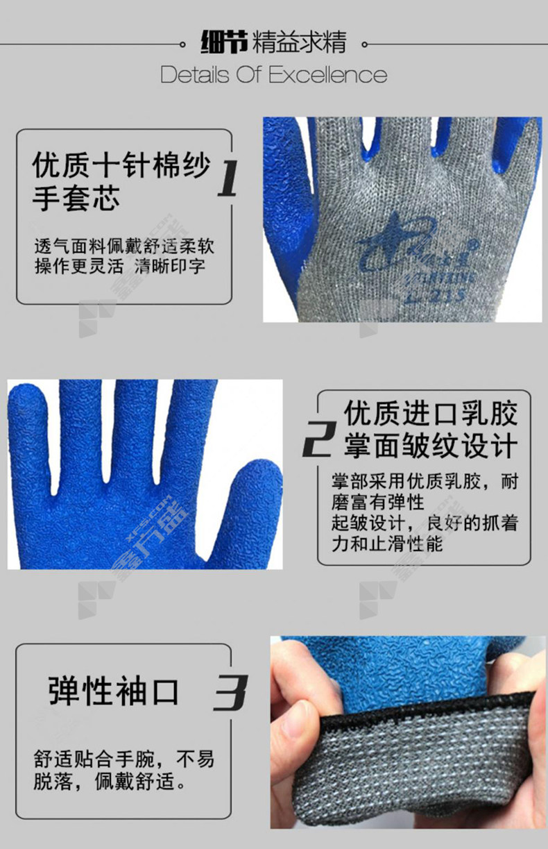商品名称: 星宇 L215 乳胶皱纹织女星手套 8码/M码 灰纱兰