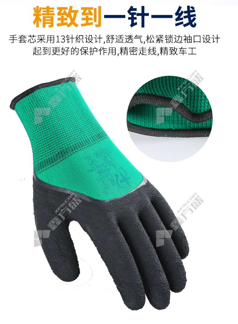 首页 首页 > 星宇 L598 乳胶发泡皱纹半浸手套 8码/M码 绿纱黑胶