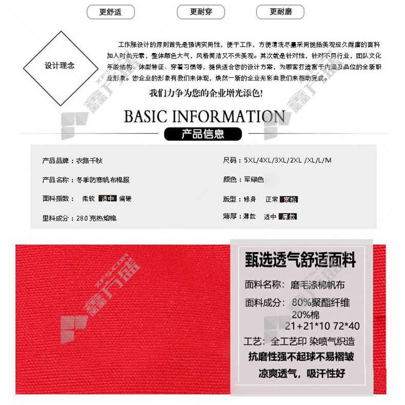 商品名称: 衣路千秋 MF-01-B 冬季可拆御内胆棉服涤棉帆布工作服 XXXXXL 深蓝色