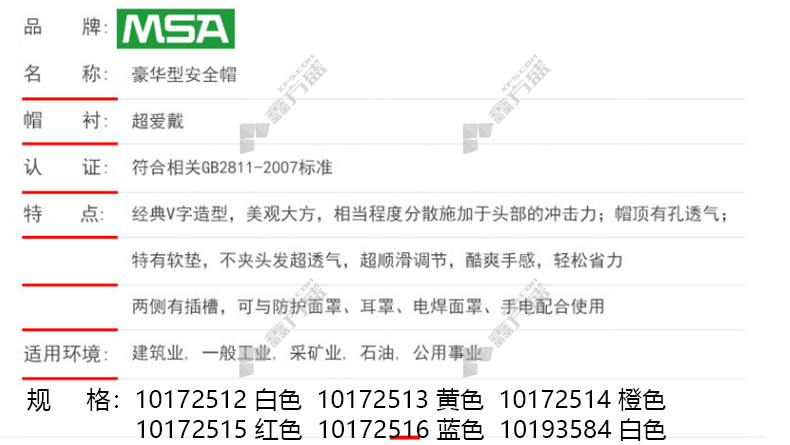 商品名称: 梅思安 PE V型 豪华型带孔超爱戴安全帽 10172514 橙色