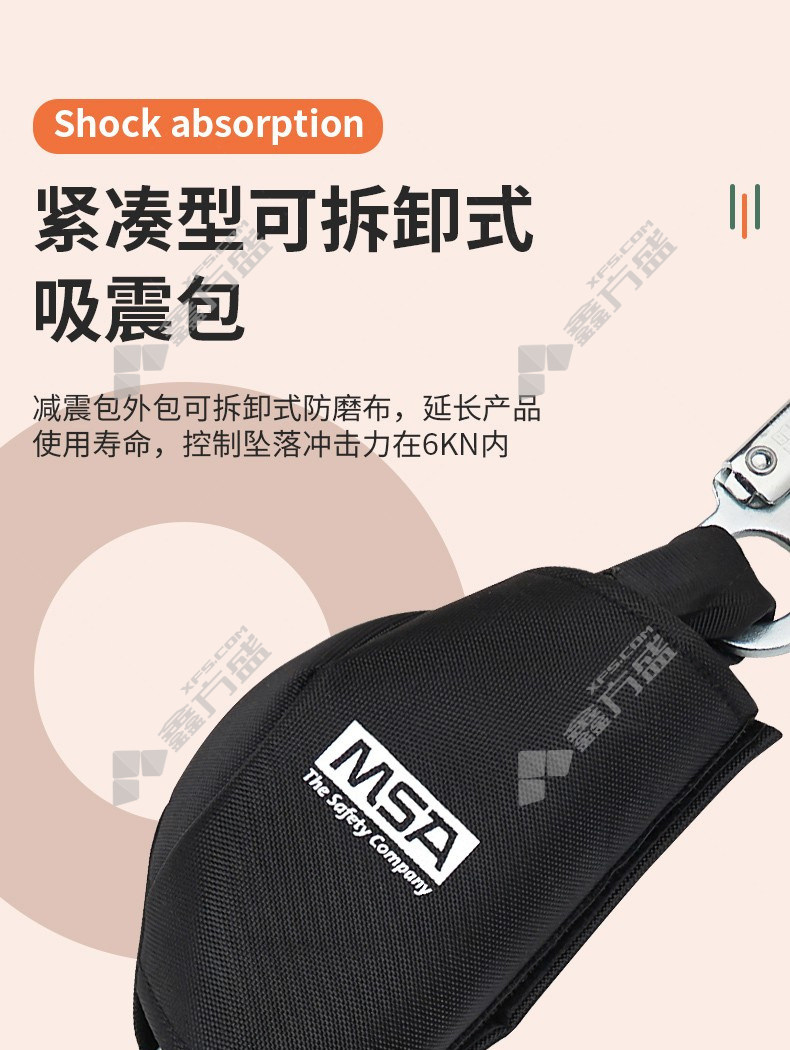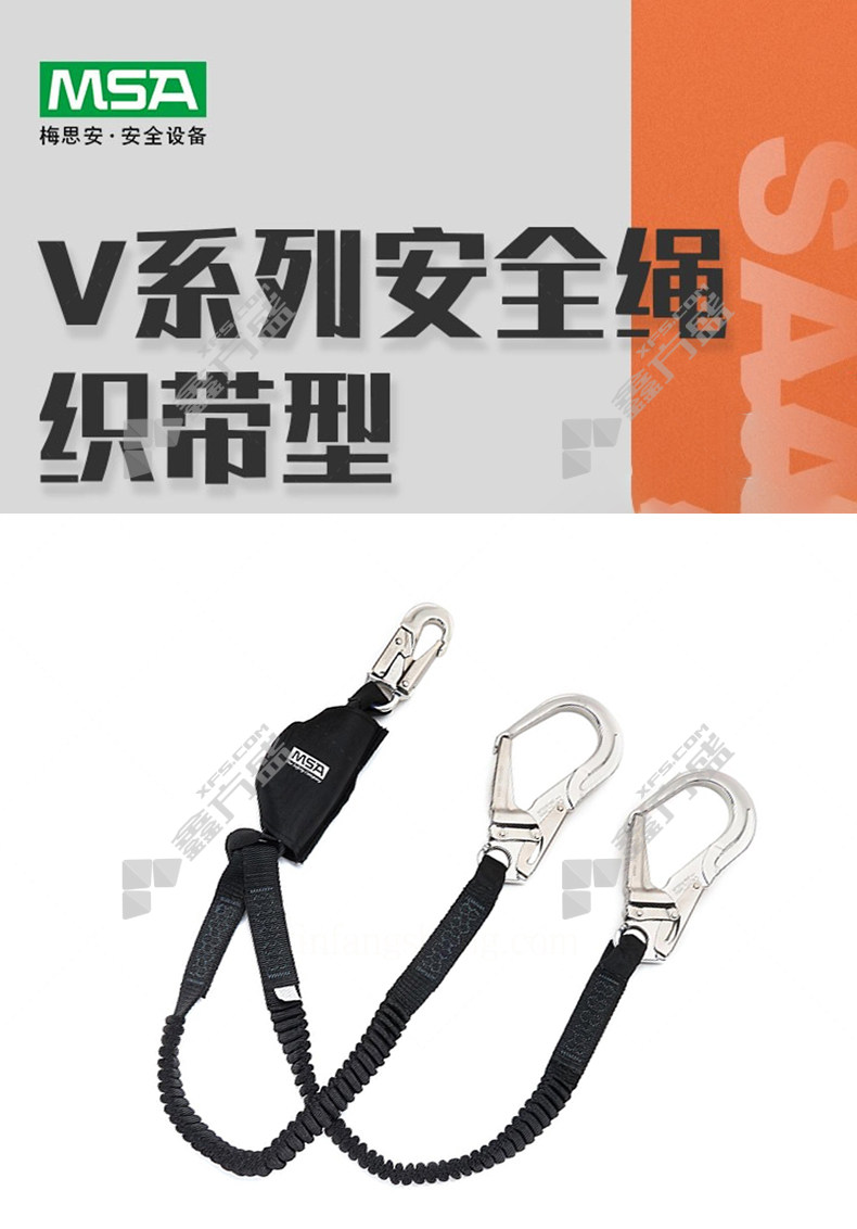 商品名称: 梅思安 V系列弹性吸震绳(铝脚手架钩/双腿) 10208070 铝脚手架钩 双腿