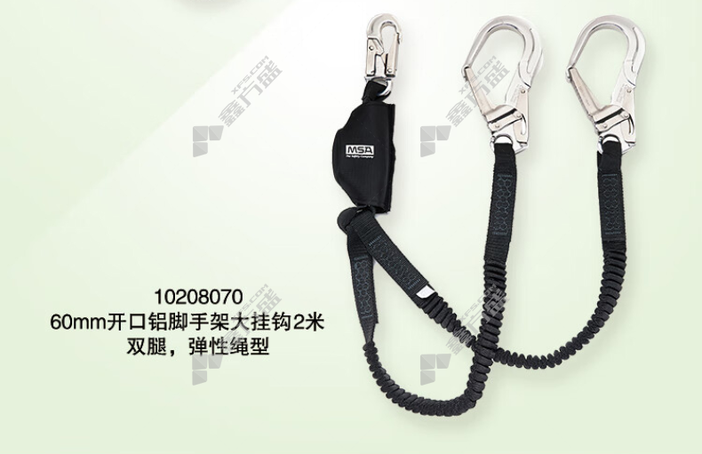 梅思安 V系列弹性吸震绳(铝脚手架钩/双腿) 10208070 铝脚手架钩 双腿