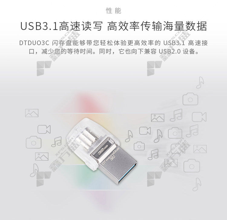 • 金士顿 DTDUO3C TYPE-C接口U盘 128GB 白色 DTDUO3C