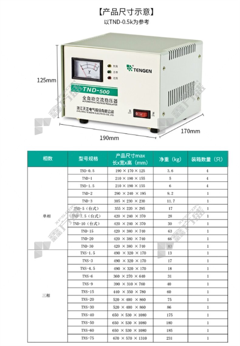 商品名称: 天正电气 稳压器TNS-9KVA型 TNS-9KVA